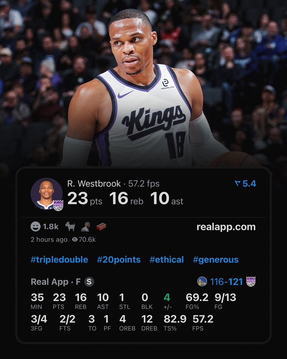First 20-15-10 game for Russ since May 16th, 2021! pic.twitter.com/rj65ycHTcR