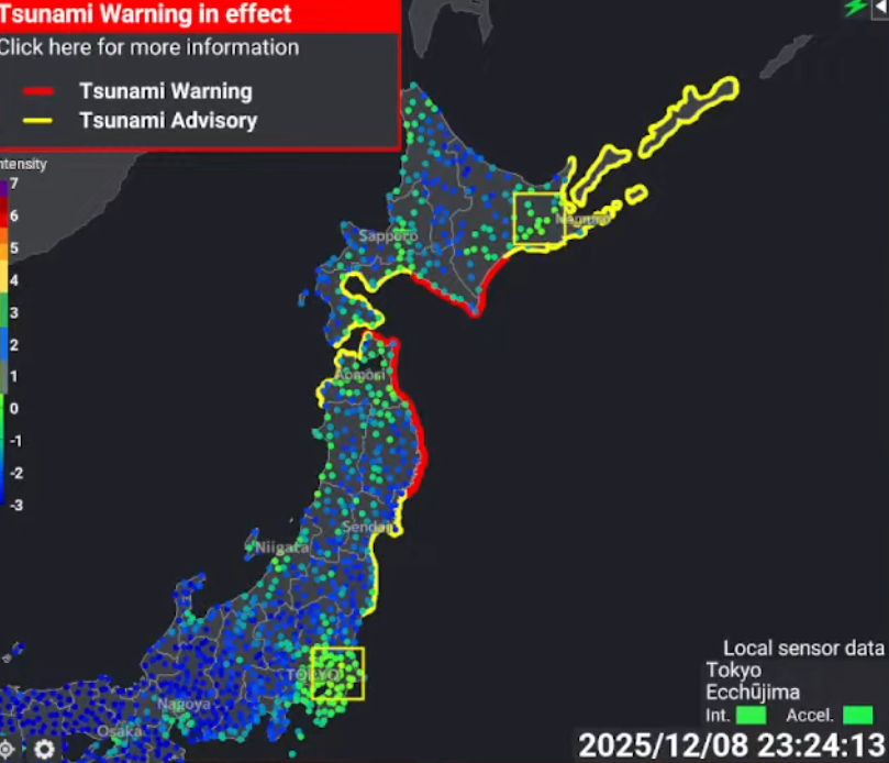 - Japan’s advanced early-warning systems activated, giving residents seconds to minutes of notice before strong shaking began.