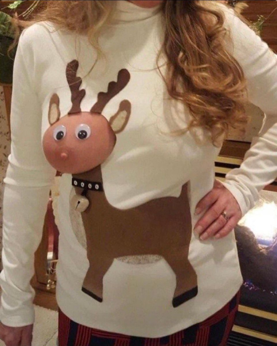 is a humorous post asking if he should wear this “ugly Christmas sweater” (with a strategically placed reindeer whose nose is right over the left nipple) to his company holiday party.It’s a classic provocative take on the “ugly Christmas sweater” trend, turning Rudolph’s red nose into an intentionally cheeky optical illusion. The post blew up with over 34k likes and hundreds of replies mostly filled with laughing emojis and people egging him on (e.g., “add a glowing red nose LED for the full effect”).These kinds of sweaters are a running joke in American office holiday parties — you can find similar designs on Etsy and Redbubble, but yeah… HR might have thoughts if you actually wear it to work.